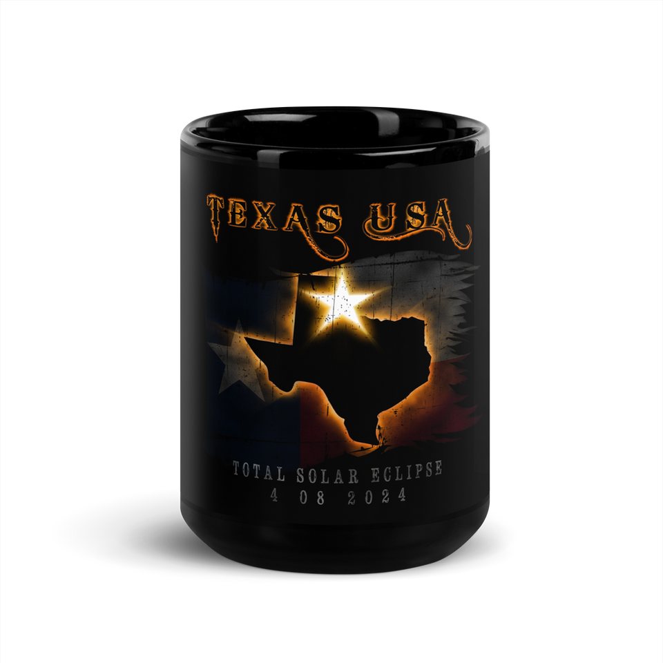Texas Solar Eclipse 2024 Black Glossy Mug
